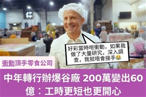 中年轉行辦爆谷廠 200萬變出60億零食公司LesserEvil老闆、前投資銀行家Charles Coristine現年52歲,他曾經非常享受在摩根士丹利工作。他喜歡投行的節奏,喜歡到甚至願意半夜起床、在東京和倫敦股市時段做交易。2011年,Coristine在華爾街工作了近廿年後,覺得身心俱疲、需要休息。他試過多種改善「療程」,包括:改食素、冥想、參加MBA課程。但都沒有作用。一次BBQ聚會,Coristine結職了LesserEvil的時任老闆。對方表示想要出售這盤沒有起色的生意... iBanker半途出家、轉行做食品Charles Coristine全無食品業經驗,但對職涯「重新開始」這個想法好有興趣。他喜歡公司名字,覺得帶有健康、自覺生活方式的含意。終於在同年11月,他撥出積蓄中的25萬美元收購了LesserEvil,並支付了10萬美元的未來款項。 他坦言這是一時衝動下的冒險,沒有經過深思熟慮。LesserEvil當時正在虧損,年收入不到100萬美元。「我不認識任何食品業人士... 沒人會叫停、問我是否瘋了,不過焉之非福?如果我做了大量研究,深入調查,就會意識到成功機率相當低。」 膽粗粗收購「沒錢途」生意「拾荒」變執到寶? 公司重組、基本上拉雜成軍收購LesserEvil時,Charles Coristine正在道明銀行工作和攻讀MBA學位。2012年,他取得MBA學位,也轉了新工——擔任LesserEvil的CEO,採取的首批舉措包括:聘請研究生同學Andrew Strife擔任COO和CIO。而行銷主管,原本竟然是Coristine的滑水教練。 這個看來新管理團隊,跟自公司「前朝」繼承下來會計師同租一間辦公室工作。雖然像拉雜成軍,但Charles Coristine的經營方向同目標明確。Coristine更新了LesserEvil的品牌形象,並創建了自家生產線。 他認為,舊有的推廣方式無法吸引顧客,而且公司每次銷售都要招除約20%收入支付予協助生產和物流的聯合包裝商,並不划算。為創業山窮水盡、但求「蔗渣價錢炒出燒鵝味道」Andrew Strife表示,Charles Coristine基本上已耗盡積蓄,因此團隊從朋友家人籌集了一筆數額不詳的資金,並善用Coristine跟一間銀行的關係,獲得更多融資。 2012年,他們搬進一座佔地5,000平方呎的工廠,並在裡面擺滿了從拍賣會上買來的二手設備。Strife說,團隊在街頭結交了一些焊工,委託他們將輪子和爆谷槍焊接至機器上。眾人將工廠外牆漆成黑色,並在建築物側面貼上「LesserEvil」黃色標誌。 品牌+配方大翻新2014年,鄰近一間地毯廠搬走,LesserEvil於是拆牆,增加了2,000平方呎的面積,也開多一條生產線。同年,Charles Coristine的營養師提出健康建議:使用椰子油來炒爆谷。Coristine起初很懷疑椰子油能否在零食袋中保鮮。於是他進行測試,將椰子油放在雪櫃頂部的發熱位置。“擺放三個月後,在雪櫃頂長期承受高溫的椰子油竟然沒有變壞,Coristine也喜歡上它那像牛油的味道。”因此LesserEvil該年推出重新配方的產品,並印上全新的彌勒佛標誌,稱為Buddha Bowl,銷售額約200萬美元,佔LesserEvil全年收入的三分一,算受歡迎。 美國最老牌也是最大間的連銷超市克羅格(Kroger)是第一間上架LesserEvil的大型零售商,2015年開始入貨。Andrew Strife憶述,是次合作為LesserEvil在2017年的第二次搬廠提供了資金。一年後,該公司獲得了約300萬美元的首筆外部資金,由永續食品和農業投資公司InvestEco所出。Charles Coristine及其團隊利用這筆資金在新工廠開設更多生產線,又再度更新LesserEvil的包裝標誌。 做生意比做iBank更開心如今,LesserEvil擁員350人。Charles Coristine希望品牌可以長年做落去,又補充稱,好感恩這盤生意幫助他解決一個私人問題︰自從離開華爾街後,他感覺更開心。「工時減少了,每日大約從早上7:45做到下午4:30就收工,這讓人快樂,所以不像工作。」 |