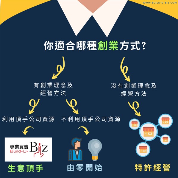 如果你已有創業理念及經營方法,應選由零開始創業或生意轉讓,日後公司的管理全權由自己決定。
