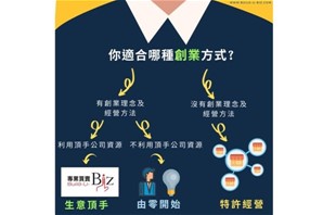由零開始、生意轉讓、特許經營,三種方法分別適合不同的人士。