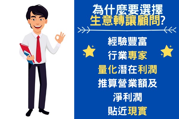 透過生意轉讓顧問生意買賣的最大優點是增加成功率。因為生意轉讓、轉讓的過程會牽涉許多專業問題,如租務、轉牌、稅務等等。加上,買賣過程亦容易有爭議。而透過中介公司則能夠提供專業知職,能幫忙解決較繁複的問題。即使有爭議的情況出現,亦能有第三者以中立立場擔當緩衝及調停的角色,令轉手過程更為順利。亦可以保障雙方的利益。
