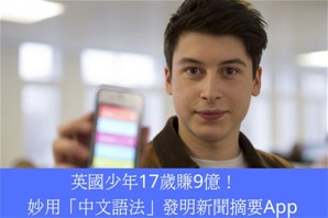 英國少年17歲賺9億! 妙用「中文語法」發明新聞摘要App